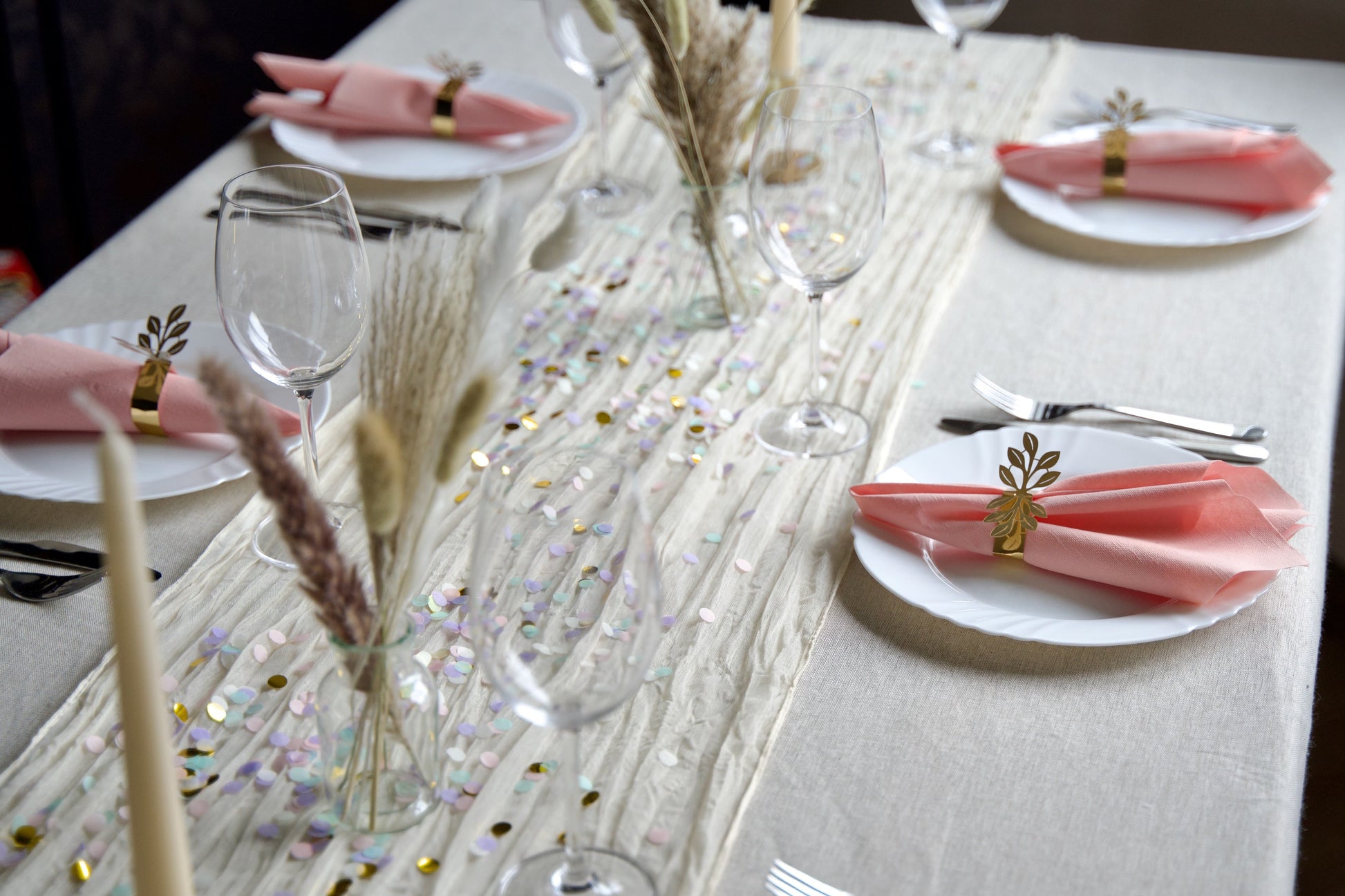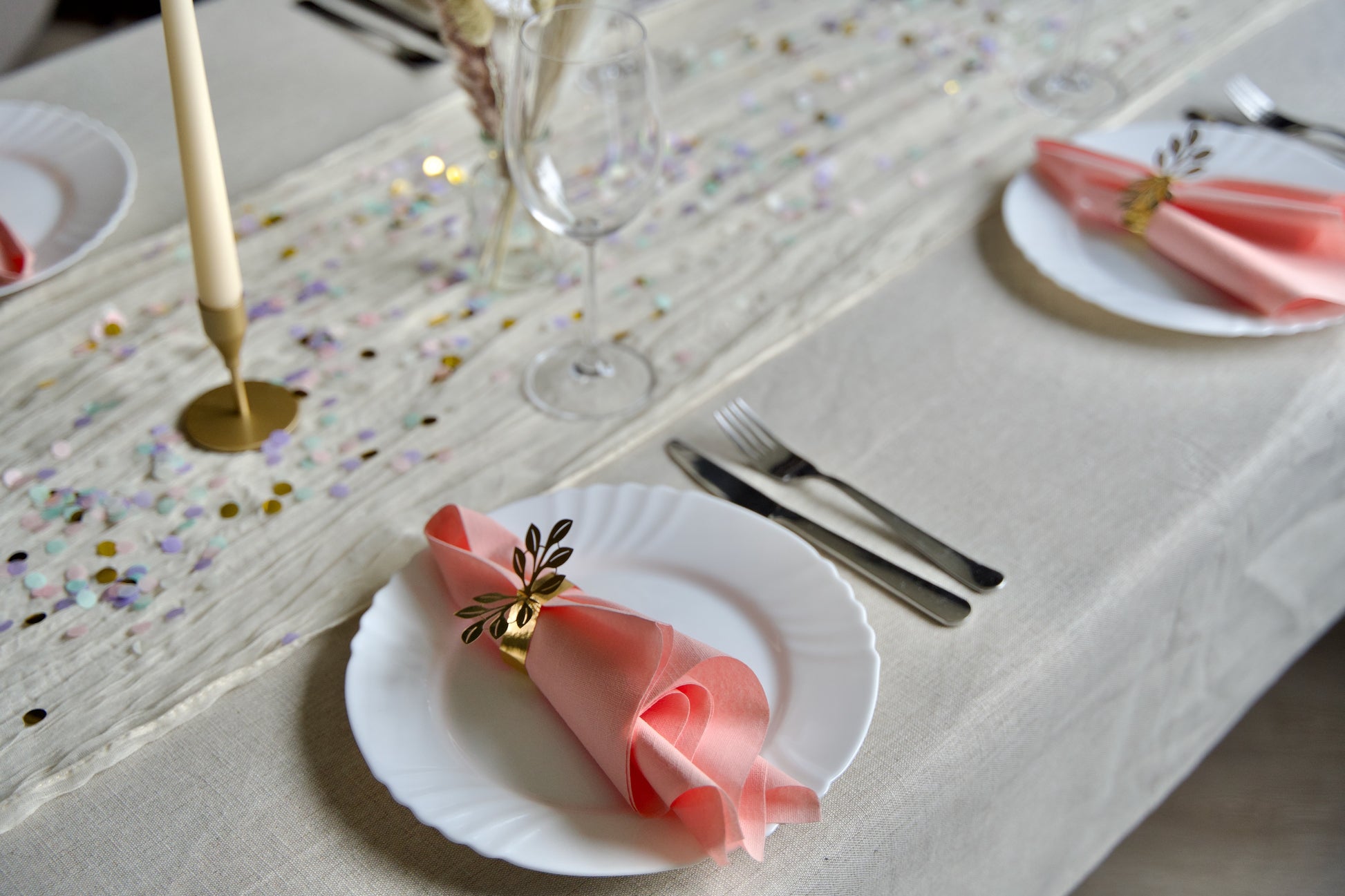 - Salocītas salvetes ar salvešu gredzenu: Šie mazie kvadrātiņi rada lielu stila iespaidu, ja tos pareizi izloka.