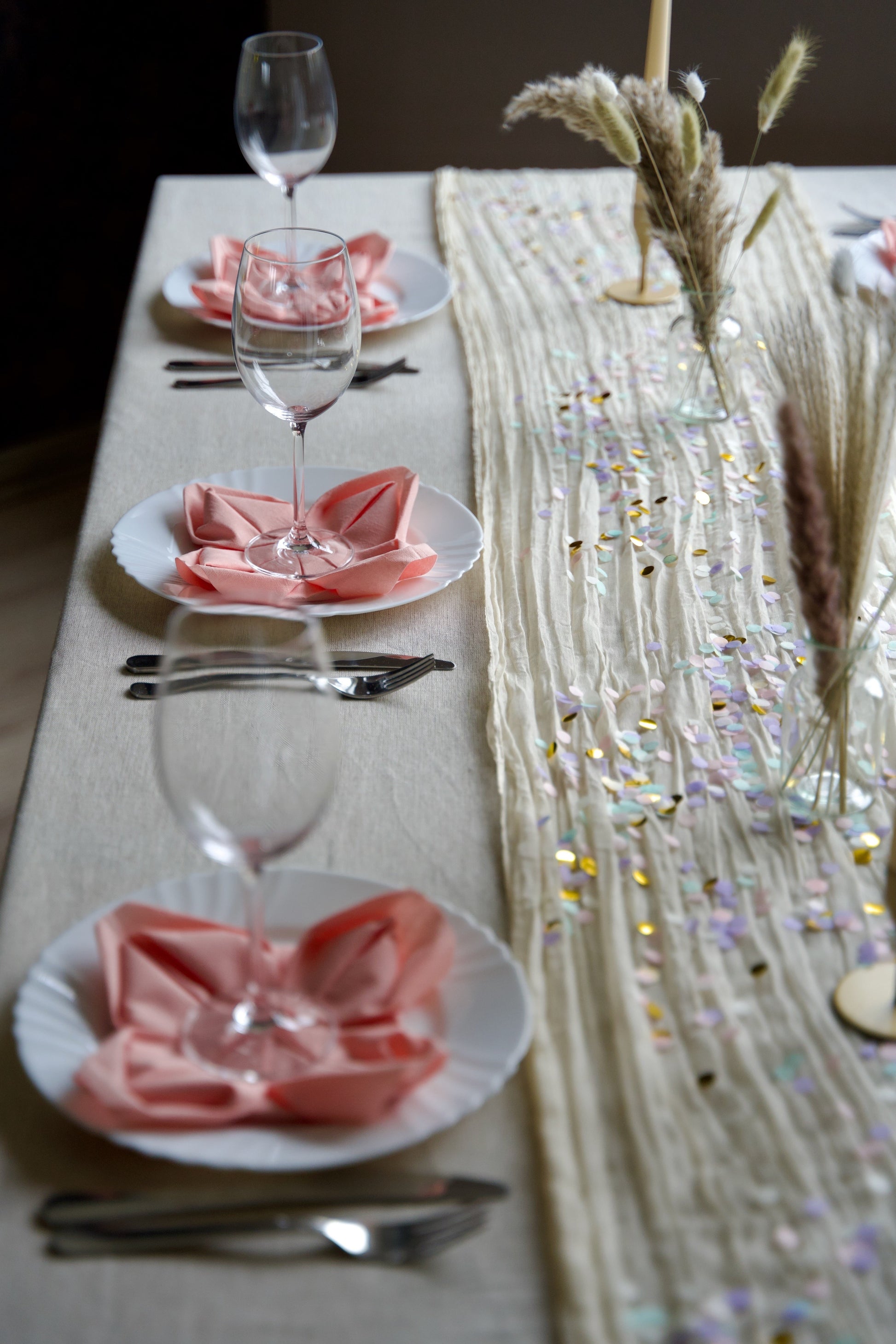 - Galda celiņš gaišā smilšu krāsā: tavs audekls kulinārijas radošumam.