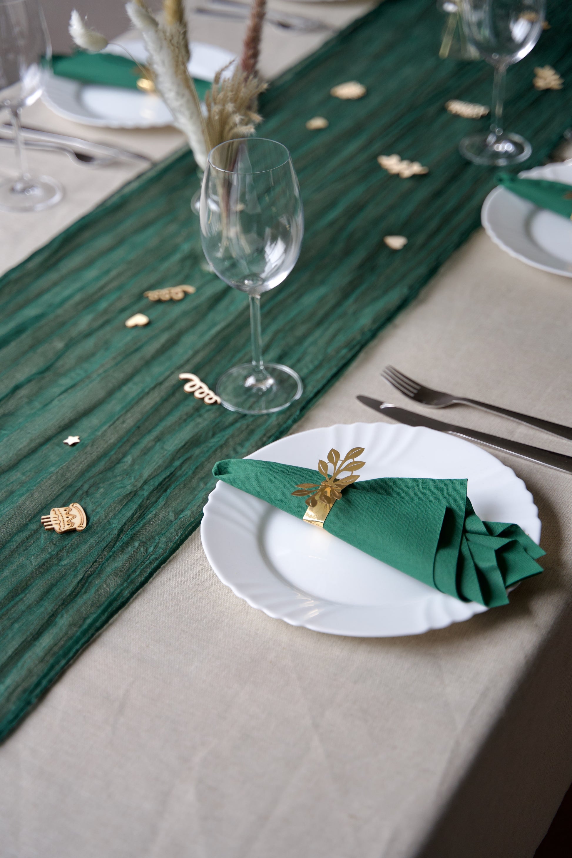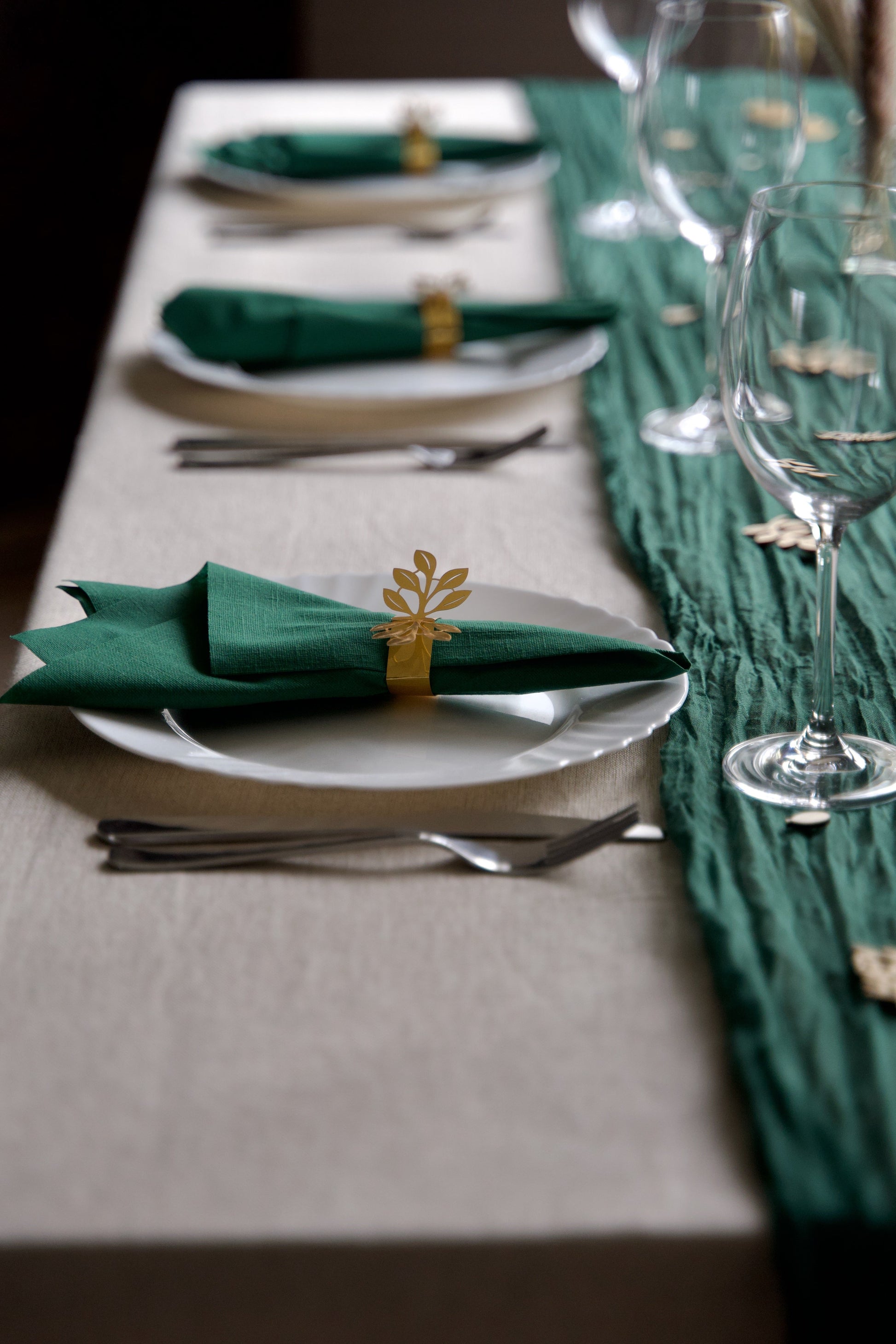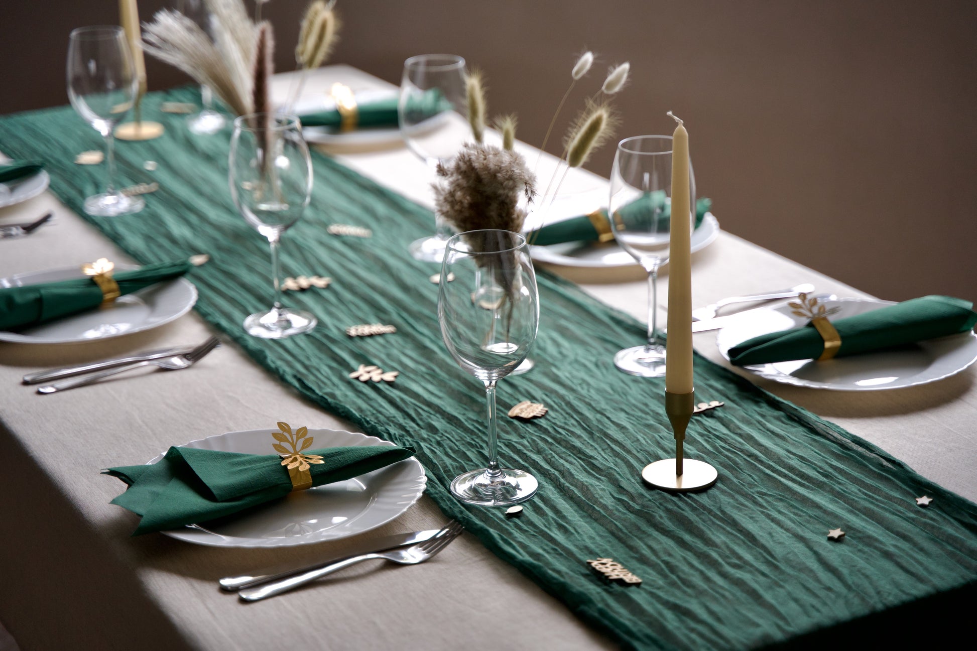 - Galda celiņš tumši zaļā krāsā: tavs audekls kulinārijas radošumam.